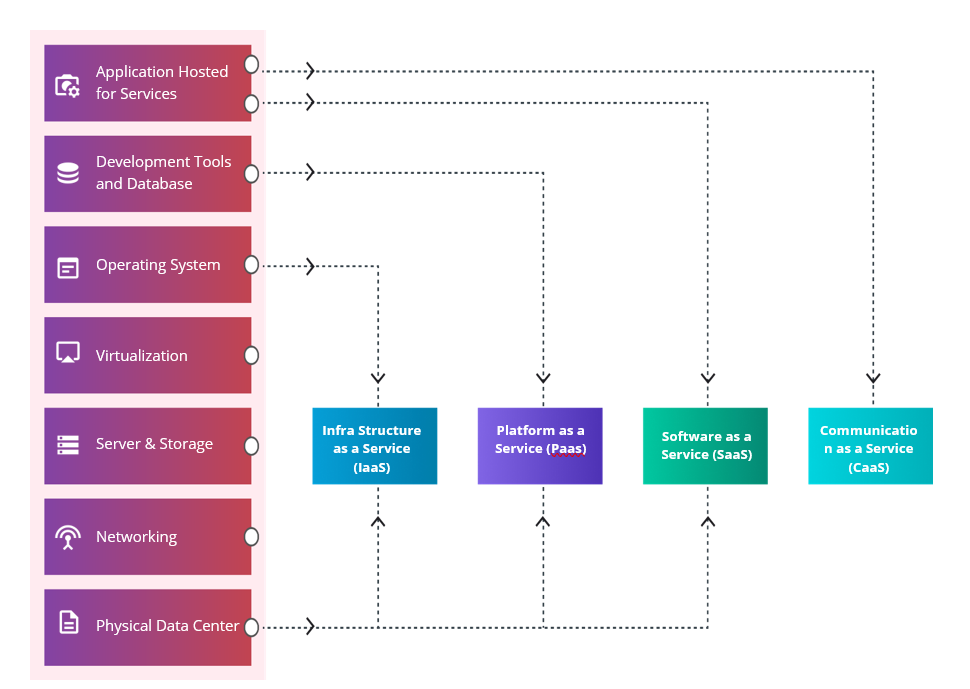 The following is a high-level diagram that shown various services and its level of operation with CaaS operating as an application hosted service.